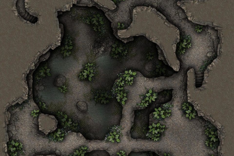 Free Multi-Level TTRPG Battlemap – Trollgore Forest Grotto