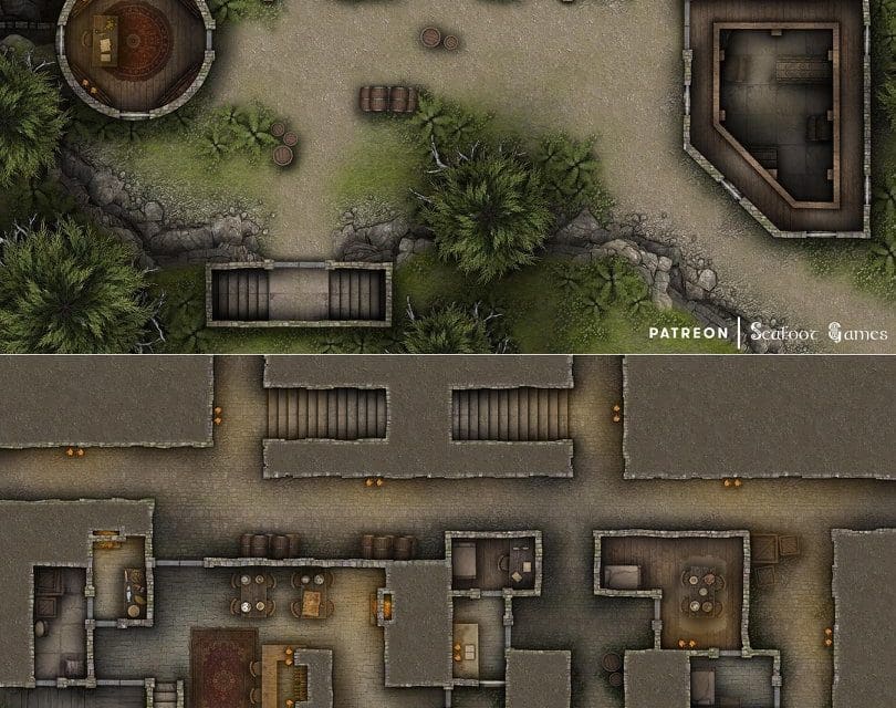 If you’d enjoy more maps like this free TTRPG battlemap of Belford’s Crossing, Luke and I are currently offering 520+ battlemaps for $39. It’s your chance to have a great deal on some of our most popular battlemaps! With over 520 total maps, we guarantee that is something here for every GM—no matter what genre or setting you prefer, from grimy dungeons to beautiful overgrown ruins.