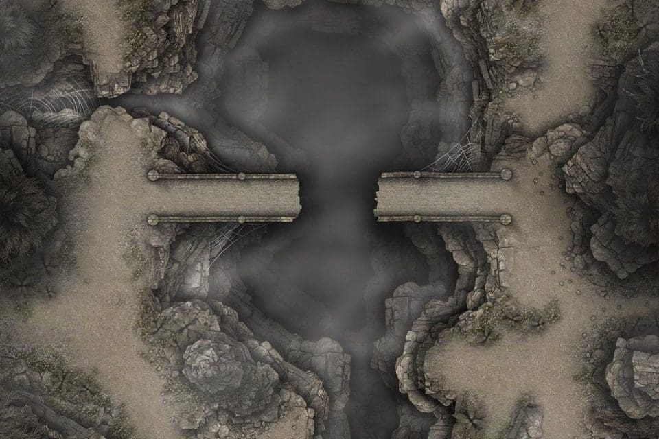 Free TTRPG Battlemap – Bleakbarrow’s Broken Bridge