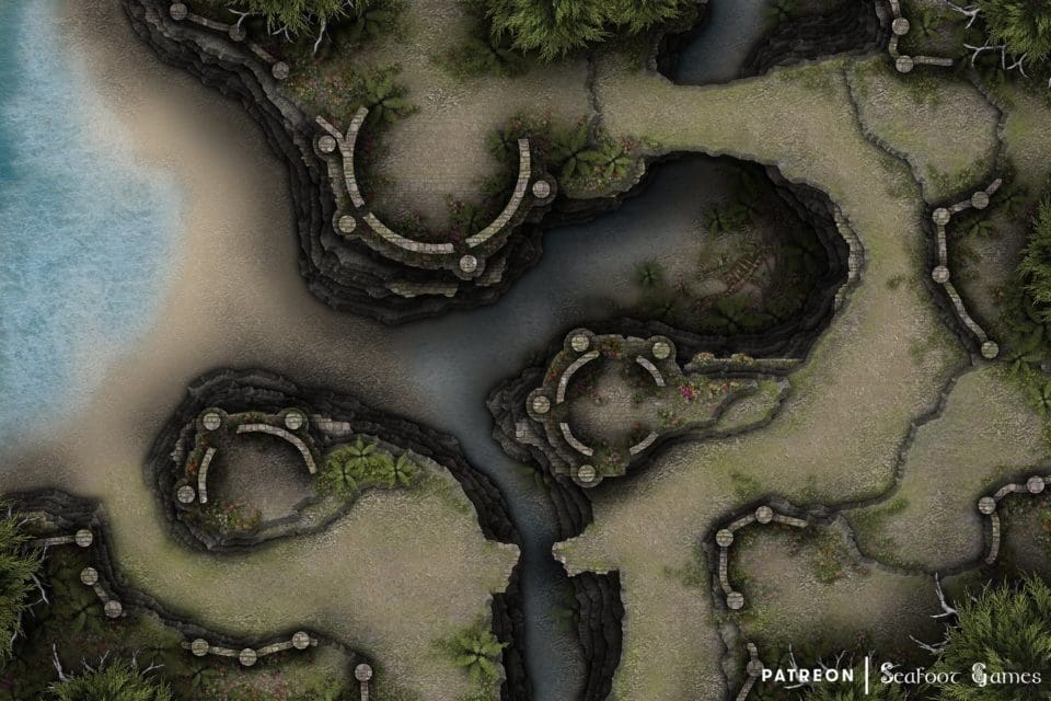 If you’d enjoy more maps like this free TTRPG battlemap of Blossoming Ruins, Luke and I are currently offering 520+ battlemaps for $39. It’s your chance to have a great deal on some of our most popular battlemaps! With over 520 total maps, we guarantee that is something here for every GM—no matter what genre or setting you prefer, from grimy dungeons to beautiful overgrown ruins.