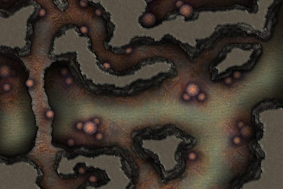 Click image to download this free TTRPG battlemap of a Fungal Caverns, then keep scrolling for the detailed adventure prompt written for it ?