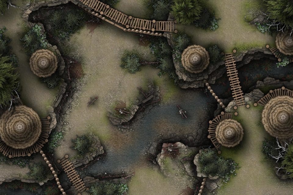 Free TTRPG Battlemap – Primitive Forest Village Arena