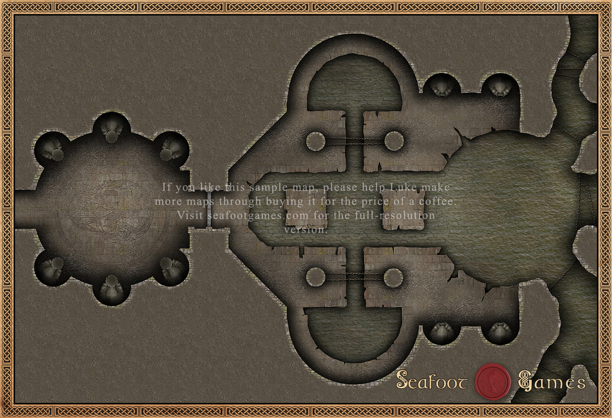 A battlemap split into separate files for one-click home printing, as well as easy use in VTTs such as Roll20, Fantasy Grounds, Foundry, and other VTT apps.