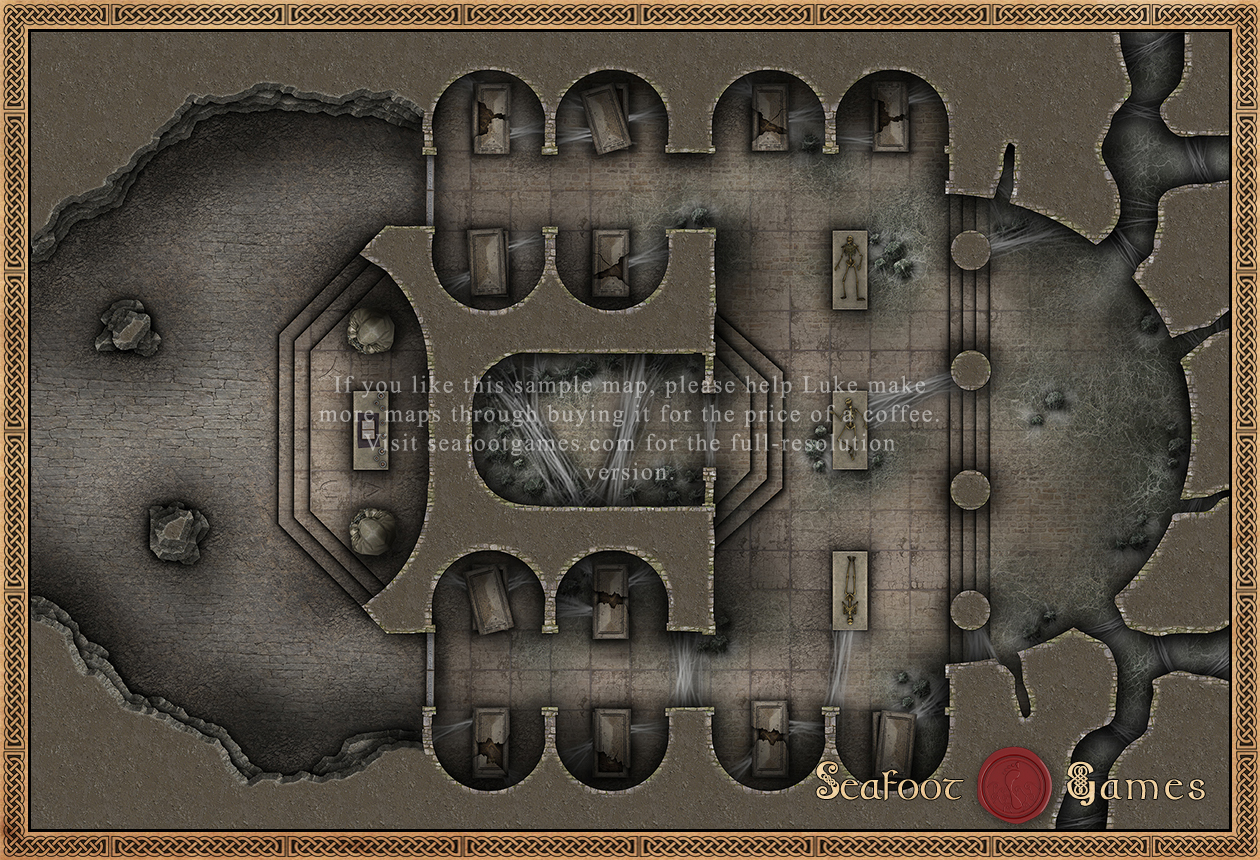 A battlemap split into separate files for one-click home printing, as well as easy use in VTTs such as Roll20, Fantasy Grounds, Foundry, and other VTT apps.