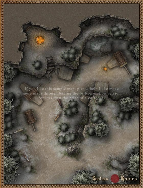 Download this Winter Caravan Camp 40×30 DnD Battlemap with Adventure now and get ready for a fun session with your friends!