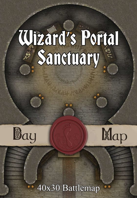 This Wizard’s Portal Sanctuary 40×30 DnD Battlemap and more are in the The Biggest Battlemap Bundle Ever! – 940+ DnD Maps & Adventures for $79.99.