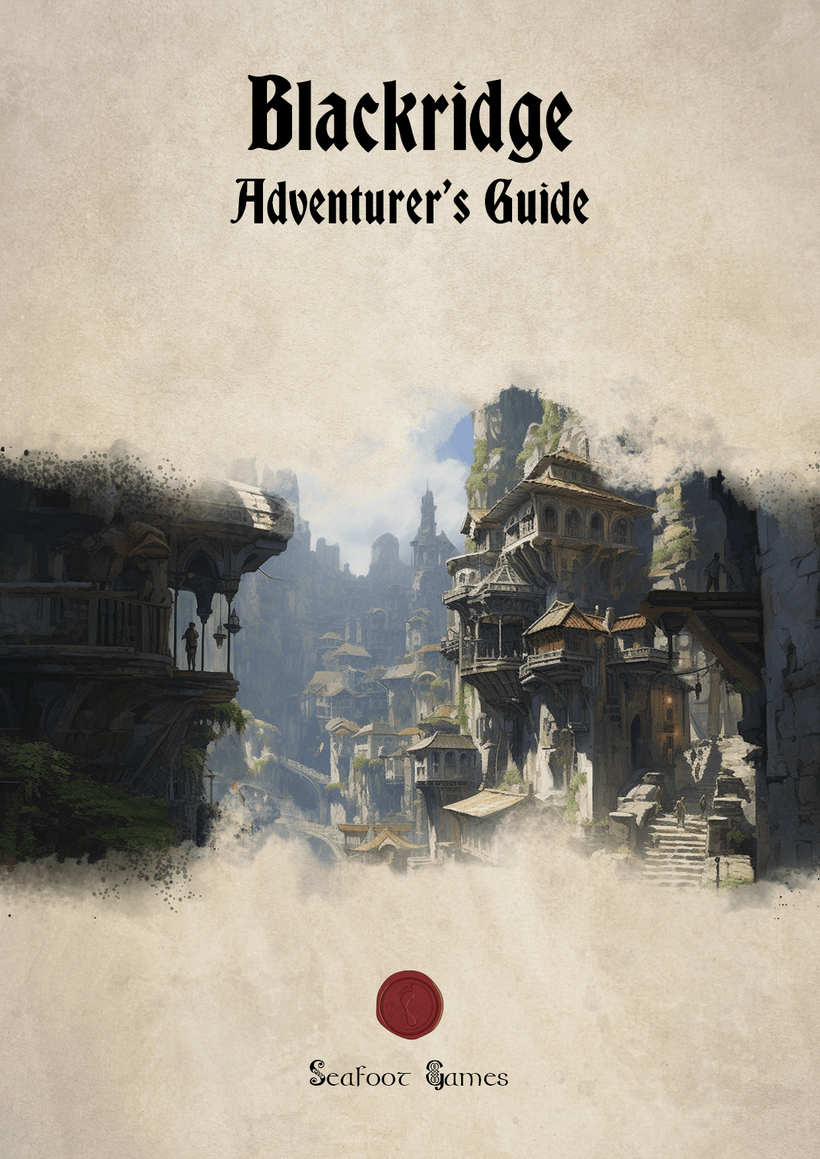 Perched atop and on the sides of a towering cliff, the city of Blackridge gazes out over a vast and foreboding dark forest below. Large stone walls stand, surrounding the city like a fortress, keeping out those who would see it harmed.