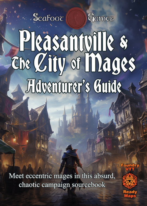 Download Pleasantville & the City of Mages Campaign Sourcebook with Foundry VTT Ready & Printable DnD Battlemaps today for 14+ sessions dealing with magical adventures with crazy and powerful mages, then watch your players struggle to contain their laughter. For example, will they choose to help the necromancer make friends, or ruin his birthday party? It’s a hard choice.