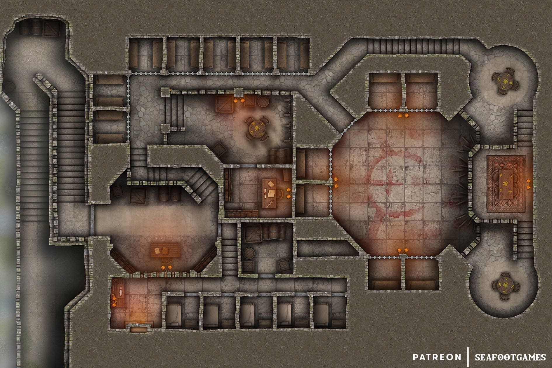 The premium versions of my maps are watermark free and ready to import into your favorite VTTs / as Foundry VTT modules with walls, lighting, and sound already done / also formatted for easy home or professional printing!